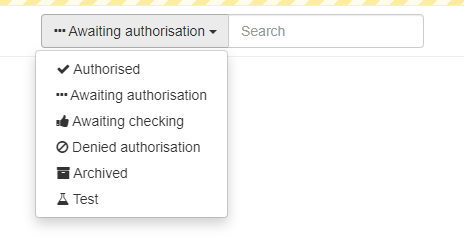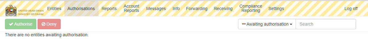 The screen will default to Authorisations and Awaiting Authorisation, to show any authorisations that are outstanding.